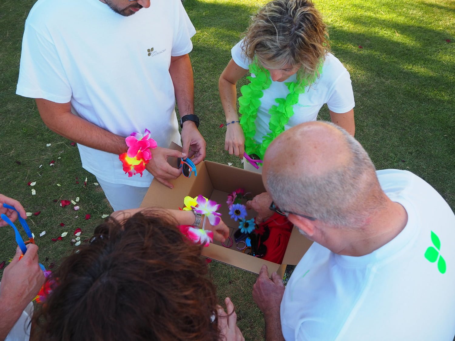 Después, como niños, correteamos por toda la finca buscando unas cajas sorpresa, que resultó que llevaban unos accesorios llenos de color para conseguir un look muy 60’s.