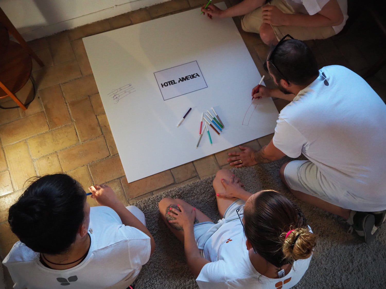 Empezamos con un poco de concentración expresando que nos inspira cada una de nuestras fincas: Ca n’Alzina, Can Macià, Castell de Tous y Hotel América. Cada una con su carácter y personalidad. El silencio y la calidez de las habitaciones de Ca n’Alzina nos ayudaron a encontrar las palabras.