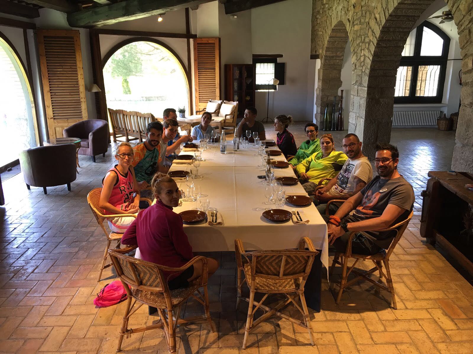 Després de 3 hores i mitja de pujada, vam arribar a Ca n’Alzina. Cansats i eufòrics ens vam premiar amb un aperitiu al més pur estil Km0 que tant ens agrada: formatges de Veciana, secallona, botifarra de Montbui…