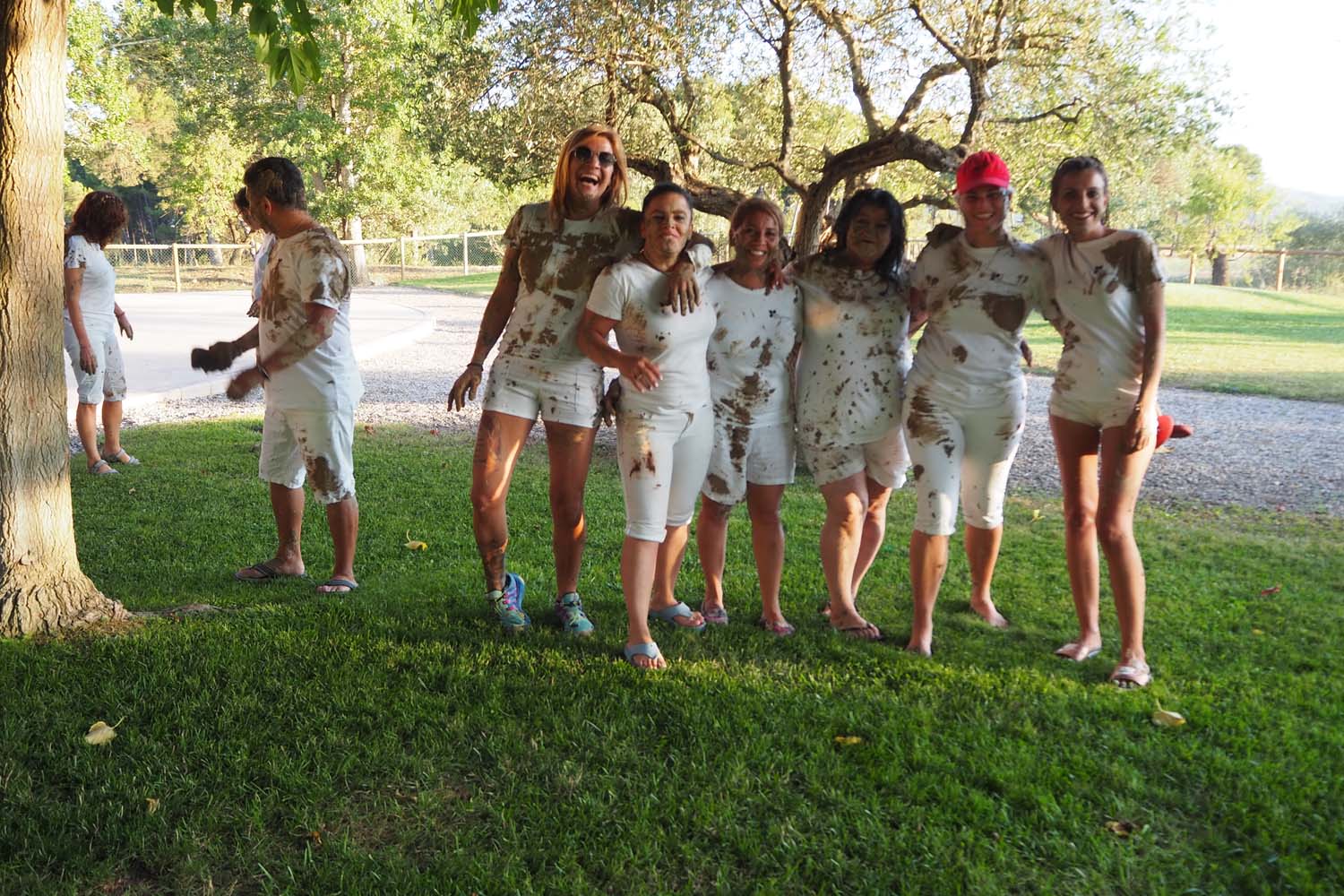 I de cop i volta un invasió de fang líquid ens va caure al damunt i un guerra de fang va esclatar. Vam jugar com a nens, i vam poder tornar a sentir el fred del fang sobre a pell, gronollut, aspre, com s’assecava ràpidament amb el sol i la pell tibava.